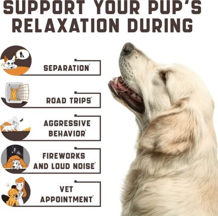 Help Promote Calmness: dog calming chews with valerian root & passionflower support your pup’s relaxation during worrying situations like storms,