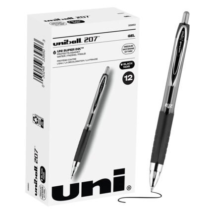 Uni-ball Signo 207 Gel Pen 12 Pack, 0.7mm Medium Black Pens
