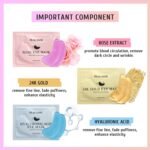 • Independent Packaging: This product contains 10 pairs of rose eye mask, 10 pairs of hyaluronic acid eye mask, and 10 pairs of 24K gold eye mask. 24K Gold Eye Mask helps rejuvenate the eye-contour skin, such as fine line and puffiness. Hyaluronic Acid Eye Mask helps hydrate skin and fade wrinkle. Rose Eye Mask helps promote blood circulation to remove dark circle.Each pair of eye mask is independent packaging to ensure that it will not be contaminated.