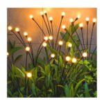 - 【SWAYING WHEN WIND BLOWS,IMITATE REAL FIREFLY】The most unique solar decorative lights in the market, our solar swaying light is propped by very soft & flexible wires, so the light sways when the wind blows, exactly like a cluster of firefly flying in the dark